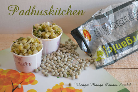 Prep time – under 10 mins Cook time -under 10 mins Serves – 2-3 Ingredients needed Dry green peas -1/2 cup (pachai pattani) Grated coconut – 1/4 cup Raw mango -1/4 cup (chopped) Salt as required For the seasoning Oil – 1 tsp Mustard seeds – 1/2 tsp Split Urad dal – 1/2 tsp Red chilli – 1 Hing – a pinch Curry leaves – few Preparation Method Heat a tsp of oil, add mustard seeds, when it splutters, add urad dal, red chilli, hing and curry leaves. After dal turns golden brown, add cooked peas and saute for a few seconds.Check for salt. Add grated coconut, mango pieces and switch off the flame. Mix well and serve. Find more Navratri Sundal Recipes Read More